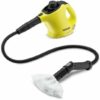 The compact 2 in 1 SC 1 EasyFix Premium steam cleaner is 100% chemical-free. The appliance does an excellent job on hard surfaces in households, such as fittings, tiles, hobs and cooker hoods. With the extension hose included in the Premium package, even hard-to-reach corners, recesses and openings can be optimally cleaned. Thorough cleaning with Kärcher steam cleaners kills 99.99 percent of all bacteria found on household hard surfaces. As well as stubborn dirt and grease deposits. The compact and handy device is ideal for cleaning between major cleanings, not too complicated, and can also be stored extremely space-saving. Powerful steam at 3 bar pressure Any dirt can be easily removed – even from hard-to-reach places. Small, handy and easy to store The device can be stored directly at the place of use, so it is always at hand. EasyFix floor cleaner with flexible connection at the floor head and convenient hook-and-loop fit to the floor cleaning cloth Optimum cleaning results on all types of hard floors at home, thanks to efficient lamella technology. Connection-free wipe change without contact from dirt, convenient fit of the floor cleaning cloth thanks to the hook-and-loop system. Thanks to the flexible wrist, ergonomic, efficient cleaning with perfect floor contact, regardless of the user’s height. Child safety lock on the device A safety system provides reliable protection for children in the event of improper use. Effective cleaning of various surfaces with a floor head, hand head, round brush, etc. It makes hard-to-reach areas easily accessible, thanks to the extension hose. High-quality microfiber floor cleaning wipe and cover for the hand For a thorough cleaning result and even better dissolution and uptake of dirt. Other features: – Surface power (m²): 20 – Heating power (W): 1200 – Maximum steam pressure (bar): 3 – Cable length (m): 4 – Heating time: 3 – Boiler / tank content (l): 0, 2 – Supply voltage (V / Hz): 220 240/50 60 – Dimensions (length × width × height) (mm): 321 x 127 x 186 Equipment: – Safety child lock – Safety valve – Integrated water filling funnel – Floor cleaner, EasyFix + extension hose (2 × 0.5 m)
