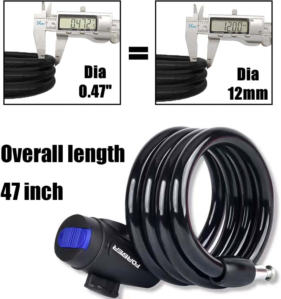 Bike Cable Lock, Heavy Duty Braided Stainless Steel Cable Bicycle Lock with Mounting Bracket and 2 Keys