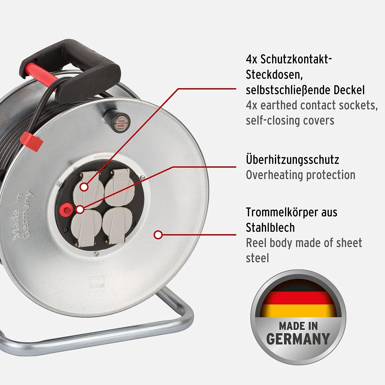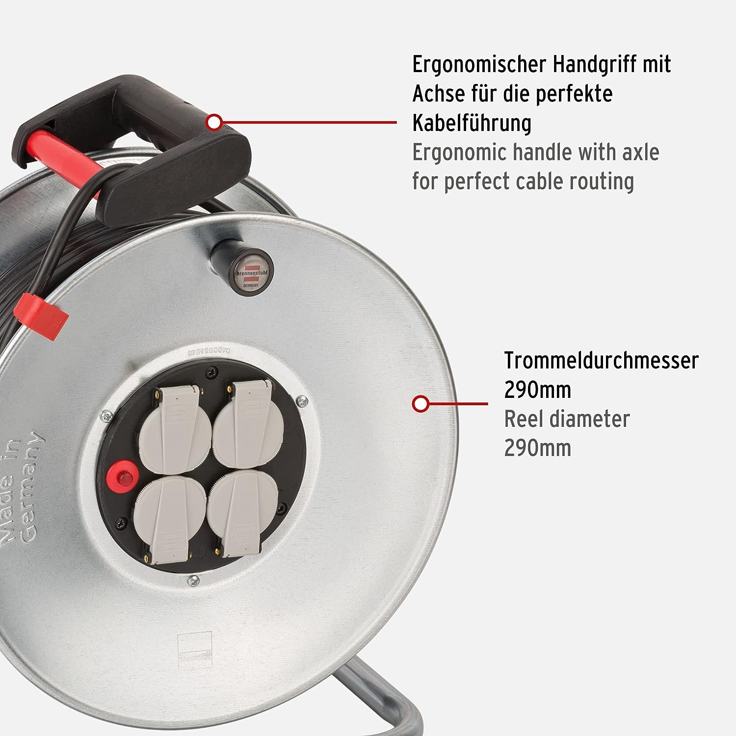 Brennenstuhl Garant S 4 E Cable Reel 50 m Made of Sheet Steel for Indoor Use Made in Germany Silver