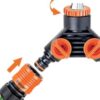 A single connector to connect two couplings to a 3/4″ or 1/2″ tap, independently regulating water flow on each way. Tool-free installation. Ensures a stable, leak-free connection. Its ergonomic design makes it easy and convenient to use even with wet fingers. Features: Outlet quick connection: Quick-Click System Adjustment: open/close Size: Width: 111 mm Height: 83 mm Depth: 52 mm Weight: 113 gr. Material: body: ABS.