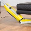 Top features: – Smart roller mops and vacuums at the same time for total cleaning – Lightweight and easy to manoeuvre for convenient cleaning – Slimline design is easy to store and takes up minimal space in your home Smart roller The Karcher FC5 Hard Floor Cleaner mops and vacuums hard floors in one simultaneous function, leaving them spotlessly clean. Capable of tackling the messiest floors, it also leaves surfaces dry within two minutes – so no long wait till you can go back in the kitchen after a clean. Suitable for use on all hard floors, the Karcher FC5 Hard Floor Cleaner cleans wood, laminate, tiles, stone, lino and parquet. Lightweight Weighing just 5 kg, the Karcher FC5 Hard Floor Cleaner is simple to move around your home, its swivel head means you can easily manoeuvre it underneath furniture and in trickier to reach areas for a thorough clean. Slimline design Once you’re done cleaning, the Karcher FC5 Hard Floor Cleaner’s slimline design means you can simply store it away in a cupboard until next time. The rollers can be stored in the base stand. KARCHER FC5 Hard Floor Cleaner – Yellow,