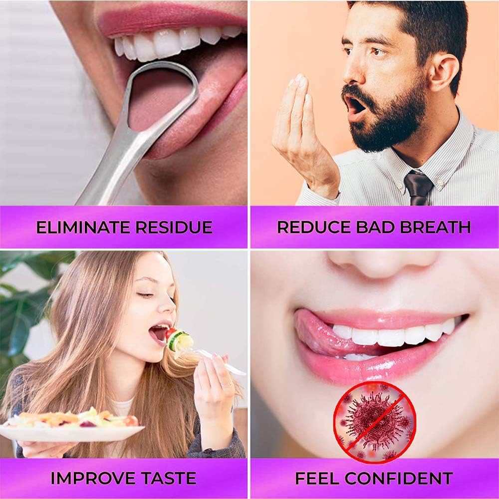 - Use stainless steel tongue scrapers to clean any coating thing from the surface to prevent a bad breath, bring the sense of taste and improve digestion